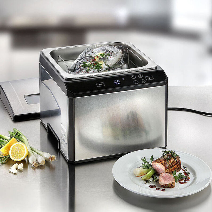 Der WMF Lono Sous Vide Garer Pro überzeugt mit einer guten Verarbeitung und sehr einfachen Handhabung. Anschließend gart das Lebensmittel „ohne Luft“ („sous vide“) über längere Zeit bei geringer Wärme in Wasser. Sous Vide Geräte kann man in verschiedenen speziellen Küchengeräte-Fachläden kaufen. Hinzu kommt der geringere Aufwand, der dadurch beim Sous Vide Garer Kauf aufkommt.